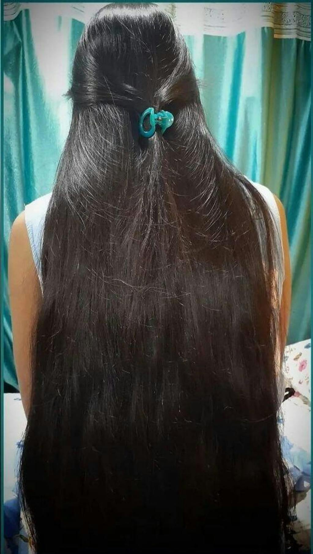 - Work the oil down to the tips of your hair for even distribution.